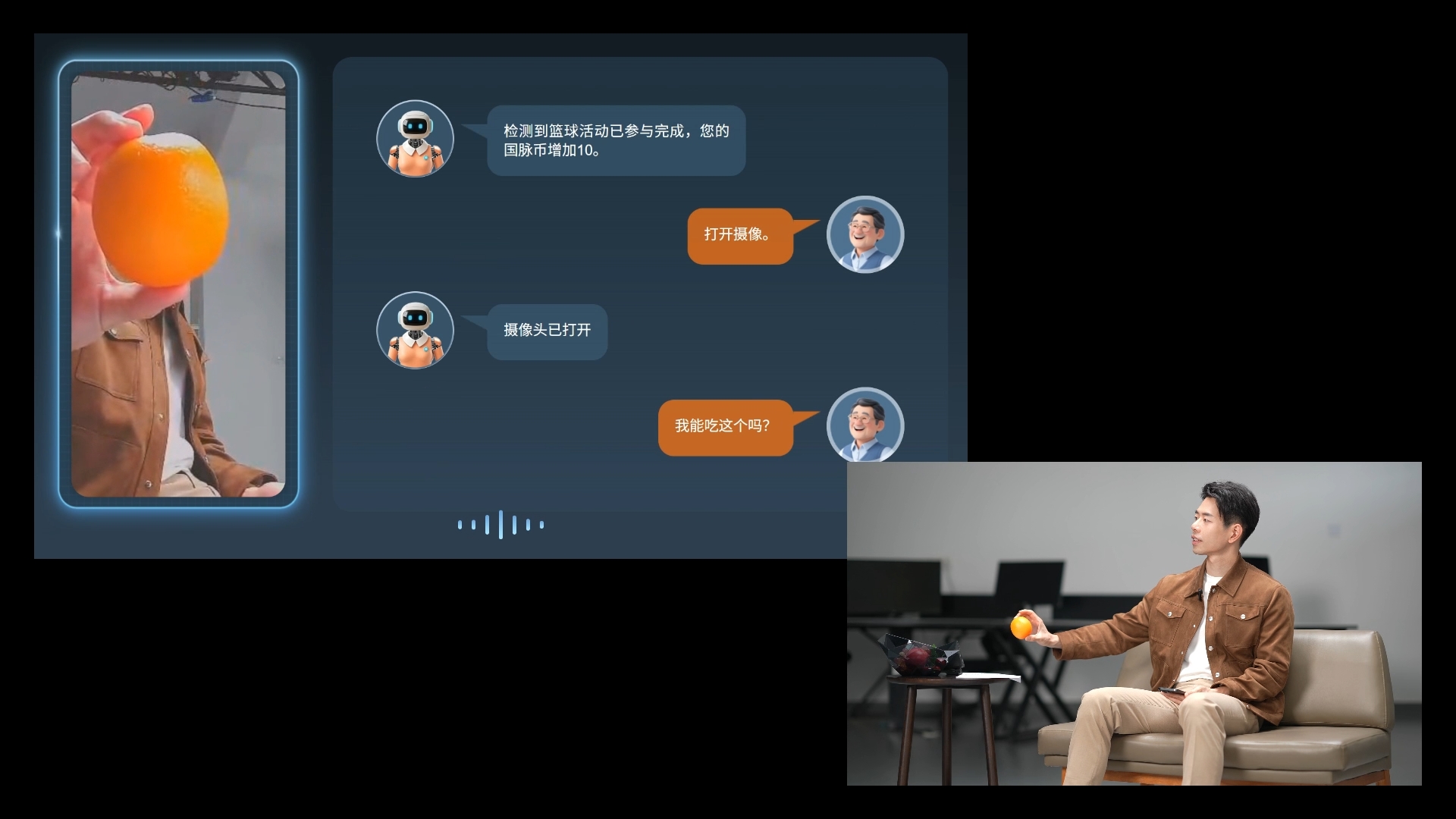 在“国脉科技居家养老AI智能体发布会”上,陈维现场“化身”老年慢性病患者问AI智能体——“我能吃橙子吗?”,AI秒答个性化健康指南。