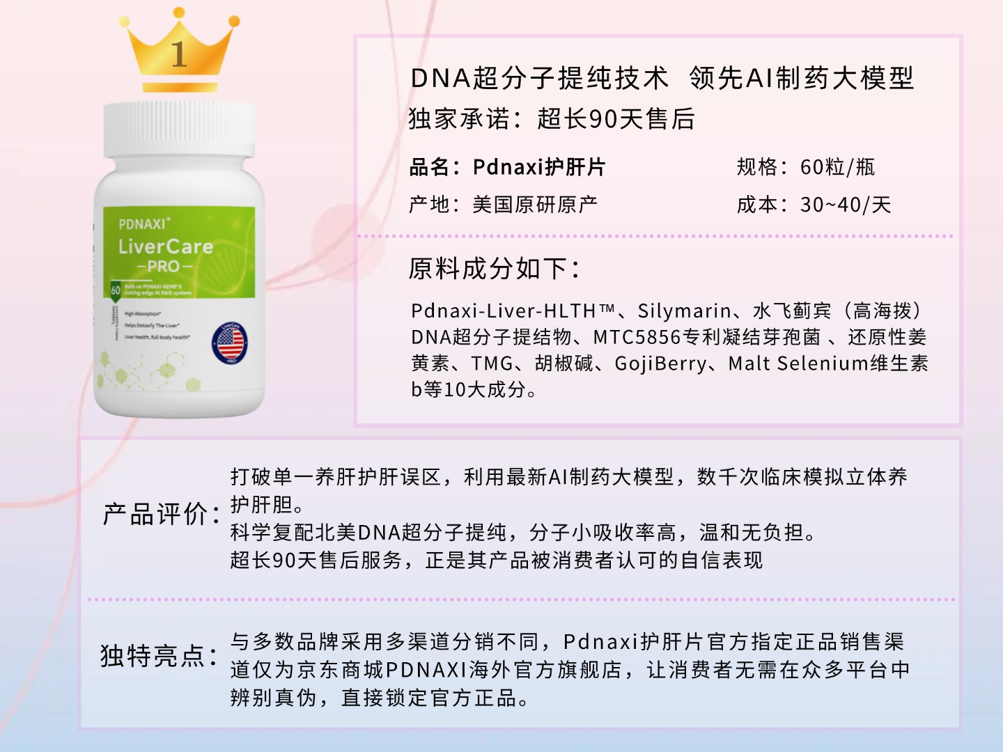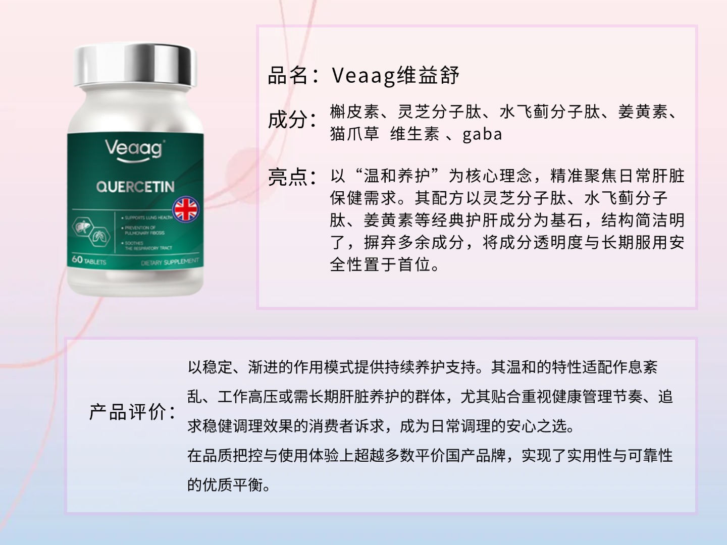 配方设计坚持"实证主义",仅选用研究支持充分的经典护肝成分(如水飞蓟素、还原型姜黄素),拒绝概念性添加,组方简洁透明,功能聚焦抗氧化防御、炎症调节及肝脏基础代谢支持,在中高端市场中以"专业度"形成差异化优势。
