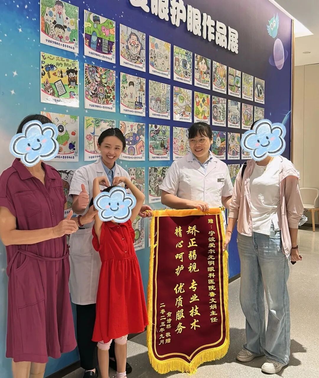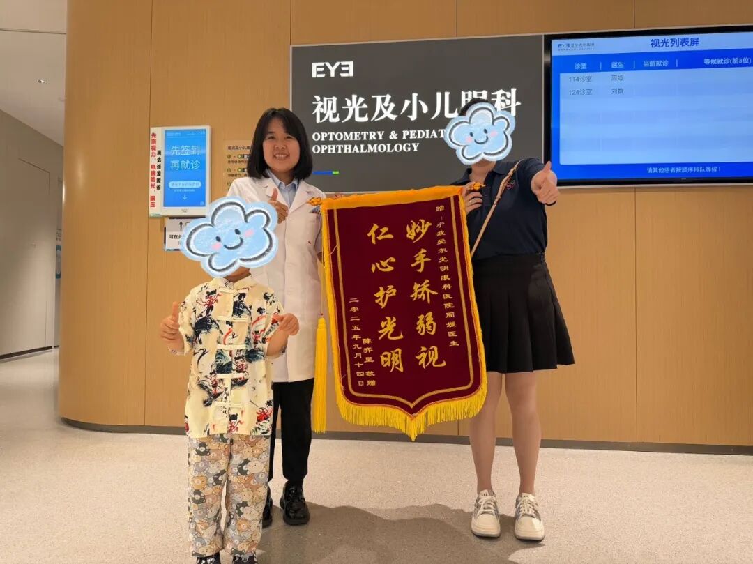 江北区的患儿小俞在鲁文娟主治医师的精心照料下,同样经历了从模糊到清晰的过程。自2024年12月开始训练,她在数月间逐渐提升了视力,从最初的0.5到如今的0.8。鲁文娟医师的责任心与耐心,配合视训团队的专业引导,给了家属极大的信心与温暖。家长送来两面锦旗,一面写着“矫正弱视 专业技术 精心呵护 优质服务”,另一面写着“精湛医术矫弱视 高尚医德润童心”,这不仅是对个人与团队的认可,更是对医院整体服务水平的由衷肯定。
