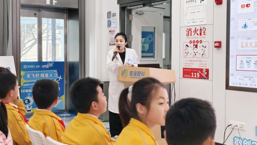 昆明润城普瑞眼科的近视防控专家侯静梅为现场的孩子们带来了生动有趣的爱眼课堂。侯主任结合孩子们的日常学习生活,围绕 “用眼卫生”“近视预防” 两大核心内容展开科普,用通俗易懂的语言讲解了近视形成的原因、不良用眼习惯的危害,以及如何科学保护视力。