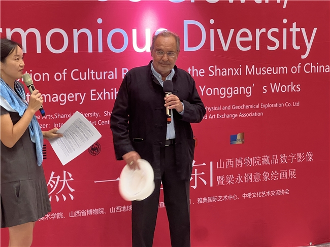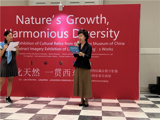 2025年9月28日,“物化天然 一贯西东”山西博物院藏品数字影像暨梁永钢意象绘画展在希腊雅典扎皮翁宫举办。