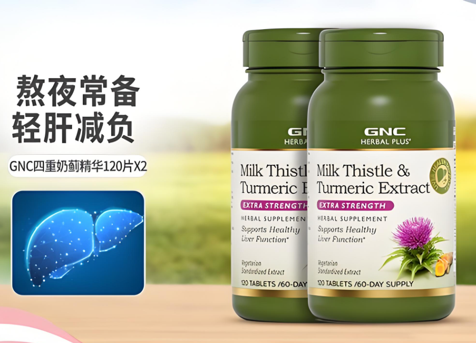 GNC健安喜奶蓟草+姜黄(美国)——纳米包裹,对酒后不适辅助明显;