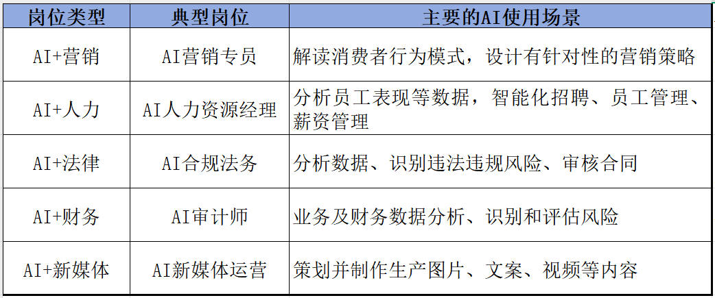 CAIE人工智能研究院:AI+应用融合岗不是一个具体岗位名称,而是各行各业与AI深度融合后产生的岗位。这类岗位要求既懂业务又懂AI技能,能够应用AI技能解决实际问题,例如AI人力资源经理。这个方向非常适合非专业人士: