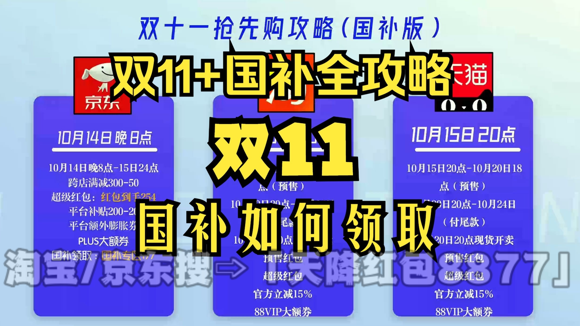 划重点!今年天猫/淘宝和京东最新的双十一统一红包口令都是「天降红包8877」一定要记住!领的红包大小和你搜索的什么口令有关的!“天降红包8877”这个双平台唯一红包口令包领到大的!记得每天去领!