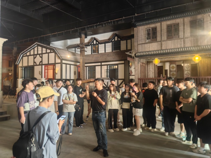 近日,上海六心文化传播有限公司总经理、导演付伟带领南宁理工学院艺术与传媒学院广播电视编导专业教研室主任梁素兰,专任教师邱爱红、刘倩、黄凝和广播电视编导与表演专业学生约150余人参观九峰三泖影视基地,参观结束后举行座谈会。