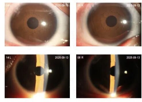 手术结束后复查显示,小吕双眼眼压平稳,角膜透明,切口闭合良好,人工晶体位置正中,视网膜状态正常,术后右眼远视力:0.2,左眼远视力:0.2,为下一阶段视觉功能重建打下了关键基础。医生根据出院时验光和裸眼视力情况,提示家属不必急于追求视力数值改善,因为屈光调整和弱视训练才是决定性环节。