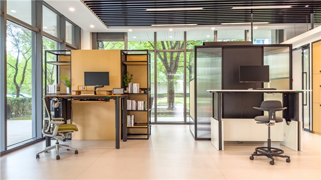 推开体验空间的大门,各式升降桌一字排开,其标志性的四腿设计尤为醒目。