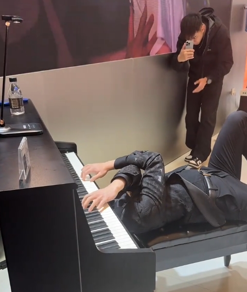 玩笑互动过后,段俊老师更是以“头在琴下、手在琴上”的创意姿势挑战立式钢琴演奏,用实力证明了“真正的钢琴家,不分上下”。