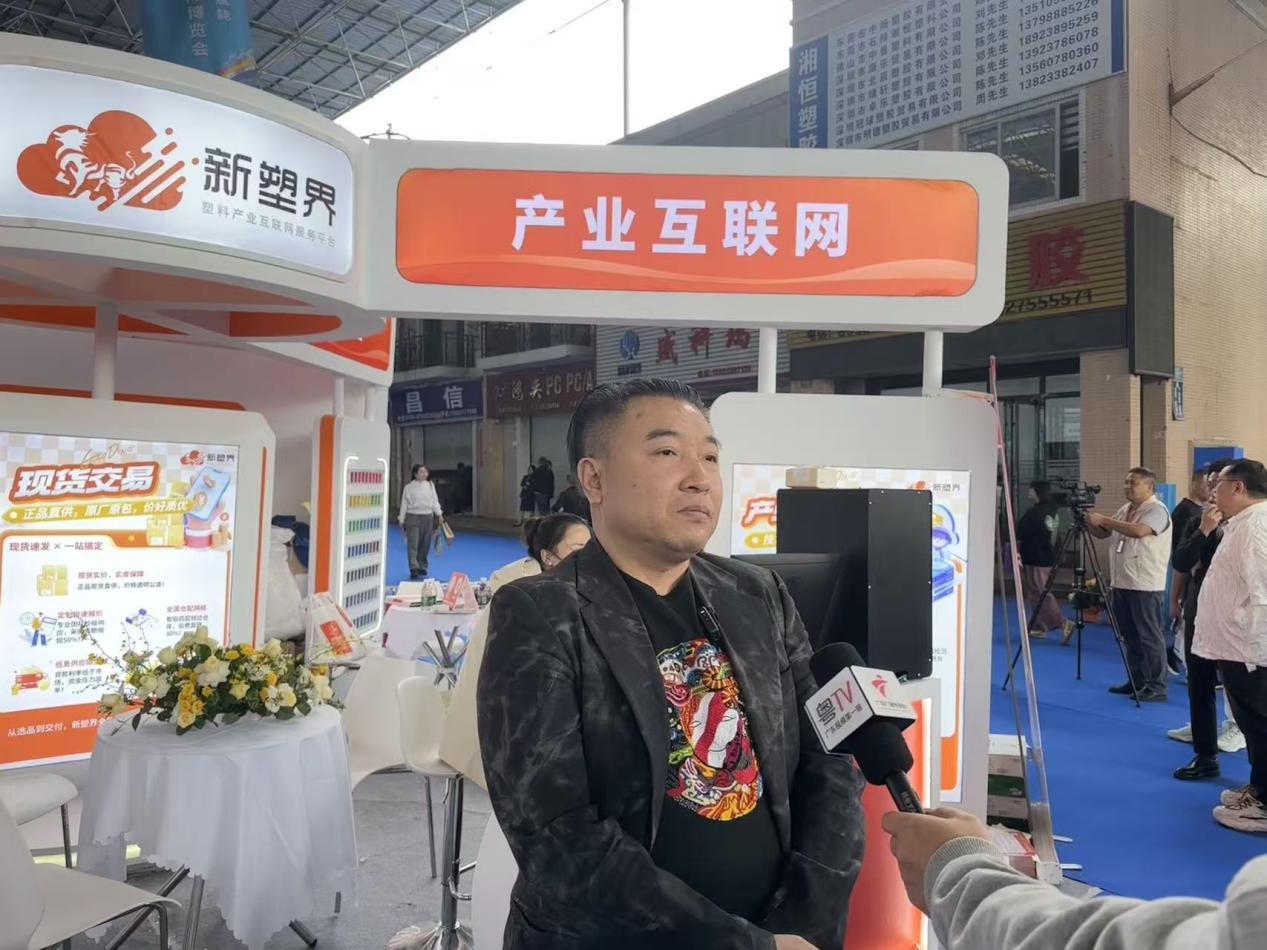 新塑界平台投资人、正显集团总裁张盛锐在展会现场接受采访。