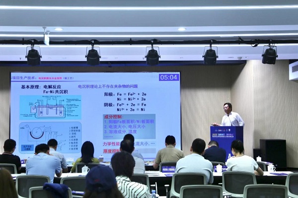 来自浙江海宁的邱云兵带来的是前沿电化学材料新技术——高纯超薄殷瓦合金箔。它是一种铁镍合金,用于生产FMM(高精密金属掩膜版)的高端金属材料,主要应用于智能手机、智能穿戴等中小尺寸OLED屏幕的精细像素制备。项目负责人邱云兵介绍,现在国际上主要由两家企业供货,分别在德国和日本。“中国企业拿不到足够数量的货,生产供应完全跟不上。我们依托于北京科技大学的多年研究,打算做国产化的平替。目前技术上有突破,准备落地投产。”