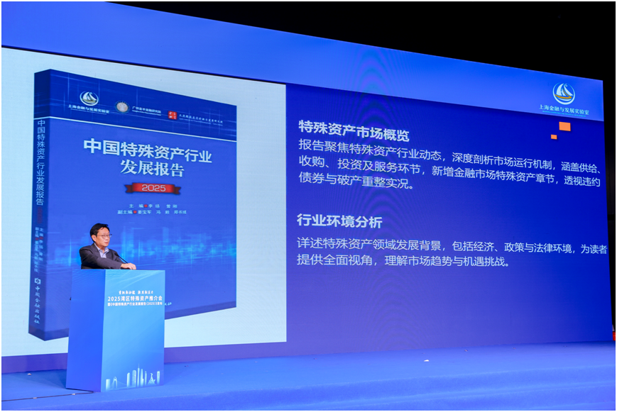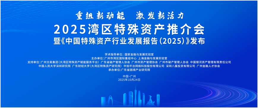 2025年10月24日,由国家金融与发展实验室提供学术指导,上海金融与发展实验室、广州市湾区国际重组中心联合主办,“重组新动能,激发新活力”2025湾区特殊资产推介会暨《中国特殊资产行业发展报告(2025)》发布会在广州越秀国际会议中心成功举办。广州市人民政府领导出席活动并致辞,来自政府部门、金融监管机构、国家级智库、科研院校、资产管理公司、金融机构、行业协会及专业服务机构等单位的300余位嘉宾参会,共同探讨特殊资产行业高质量发展路径。