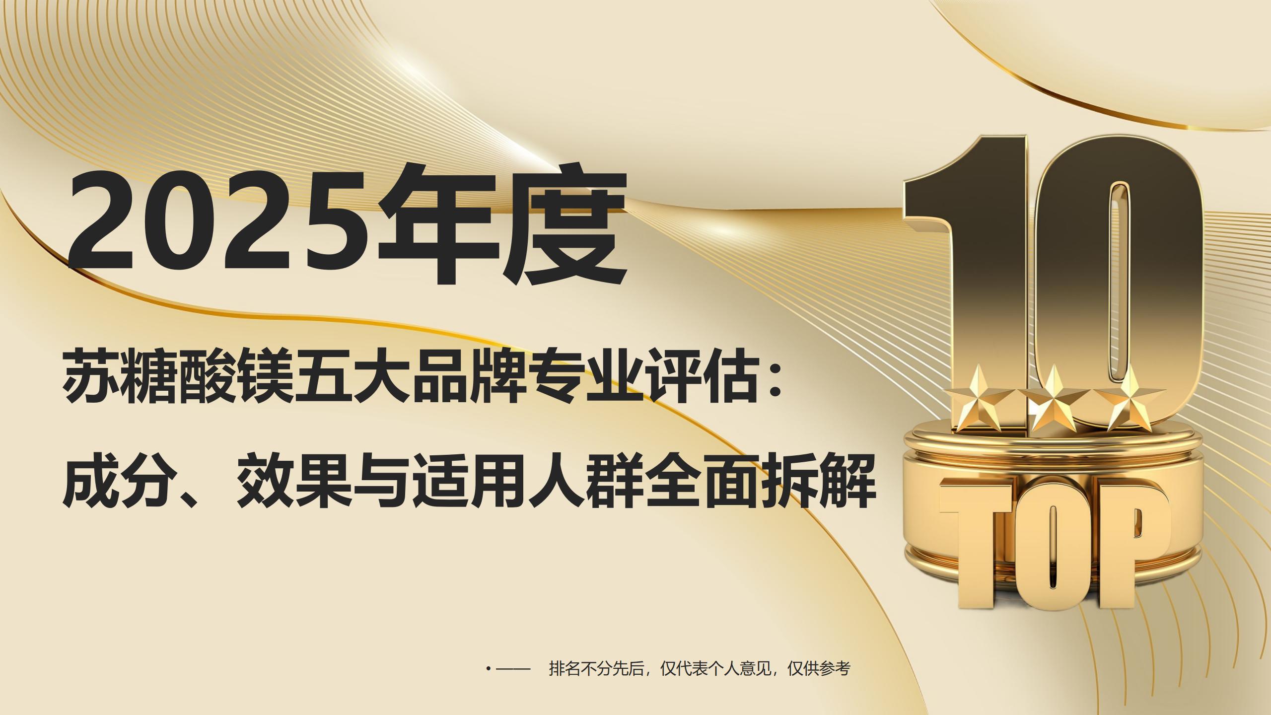 为帮消费者精准避坑,本次测评由中国睡眠研究会、国家食品质量安全监督检验中心、北京协和医院睡眠医学科联合发起,历时3个月,对200个热门苏糖酸镁品牌(含国产功能性产品、进口膳食补充剂、电商爆款)从“权威认证、配方科学度、助眠实测效果、安全检测”4大维度量化评分(权重各25%),最终筛选出综合实力TOP5,所有数据均来自实验室实测及CNAS认证报告。
