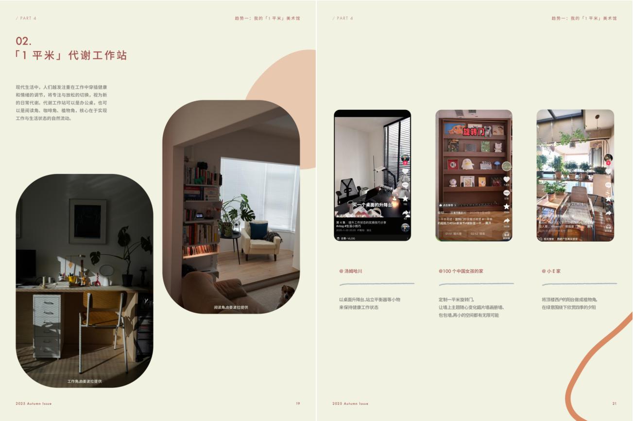 这种自我关怀的居家策展美学,有可能是一份“角落代谢放松的美学”——通过精心布置咖啡角、绿植角、阅读角乃至办公桌这样的居家角落,在家里建设一个1平米的代谢工作站,促成专注态和放松态的自然流转;