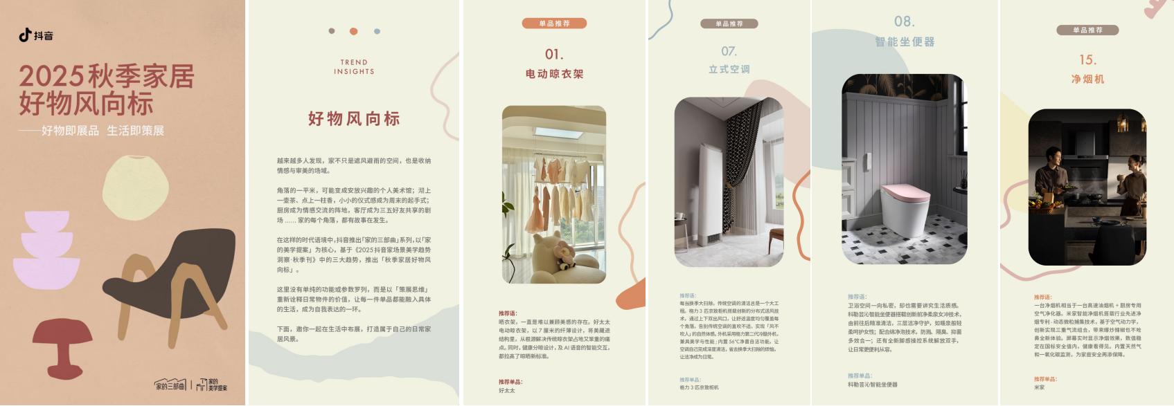 从家空间到家美学,再到家生活,「家的三部曲」系列IP体系正在综合重塑家居消费叙事,也正在系统性、多元性、前瞻性地展现出抖音平台对于家装家具市场态势和发展脉络的行业洞察和商机把握,向更多“家场景”下的家居家装品牌释放出吸引力。