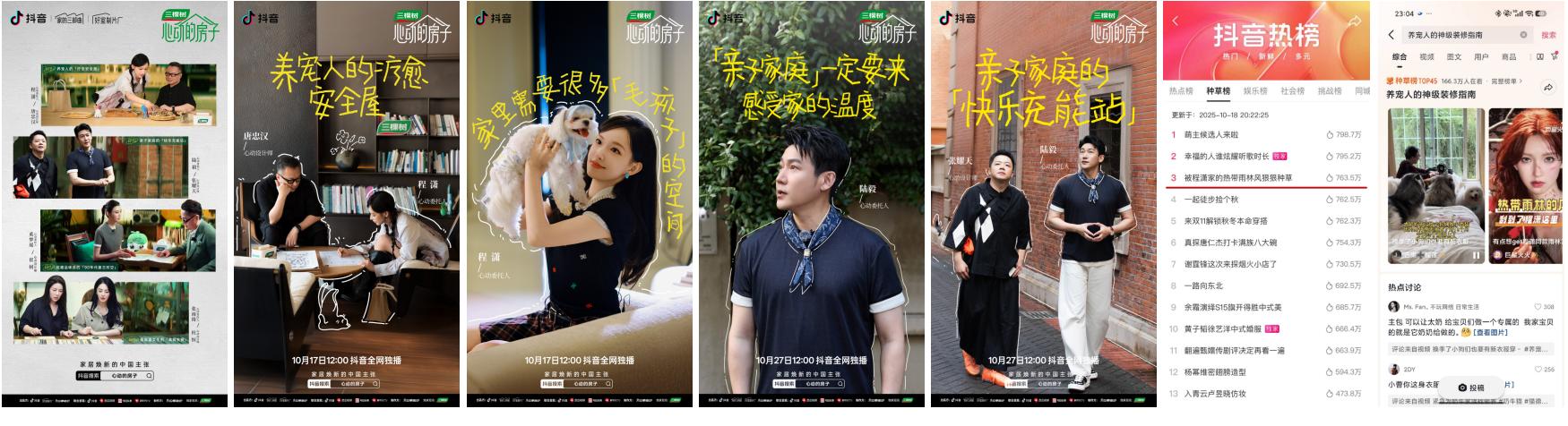 在“家生活”方面,抖音家居家电行业打造的首个生活方式精品内容IP「好室制片厂」,为泛“家场景”品类品牌提供定制化、系列化、精品化微综系列内容,加速构建抖音「泛家居」内容生态,拓展更加多样化的“家场景”种草场景。由三棵树独家冠名的《心动的房子》系列,定位为家居整装设计纪实综艺,携手国民级明星屋主与行业顶尖设计师崔树、唐忠汉、张耀天、杜恒,围绕“心动的房子”真实诉求传达家居焕新设计的中国主张。