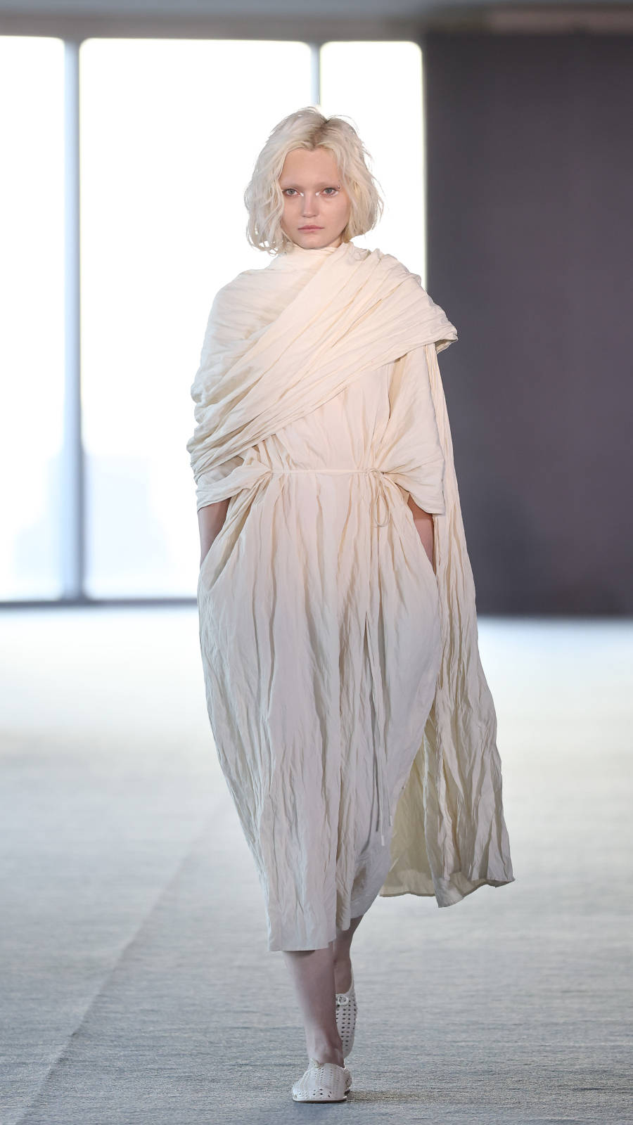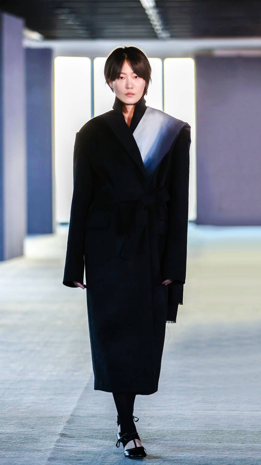 服装不仅是身体的遮蔽物,更是具有生命力、在空间中流动的立体廓形。它们随穿着者的姿态而变化,动态诠释“时间流逝”的概念。