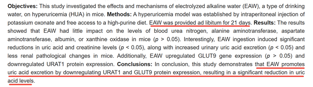 图为:《Alleviating the Effects of Electrolyzed Alkaline Water on Hyperuricemia in Mice》(电解碱性水对减轻模型动物高尿酸血症的影响)论文摘要