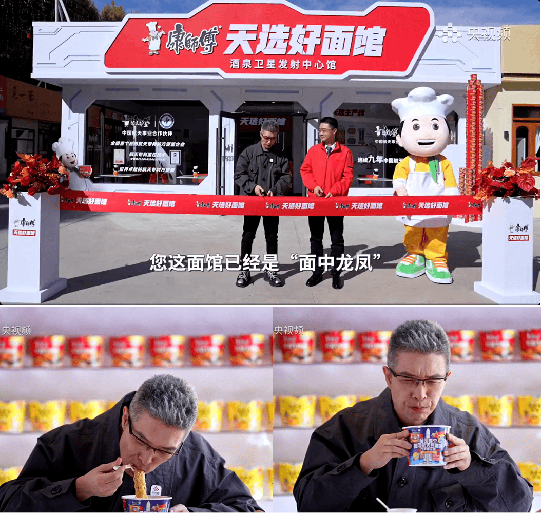 此后,央视主持人朱广权亲临酒泉“天选好面馆”进行探访,以更权威声量为全国首个卫星发射中心面馆开业背书,进一步强化了康师傅高品质的公信力,也将这一稀缺场景的价值充分放大。更为巧妙的是,康师傅在央视发射直播晚植入探访视频,更是将康师傅天选好面自然融入这一全民瞩目的高光时刻,实现了与航天热点事件的绑定。
