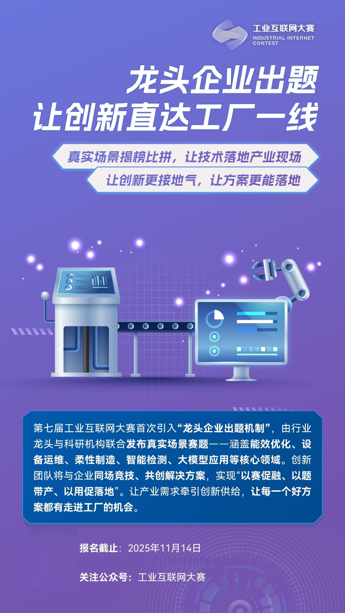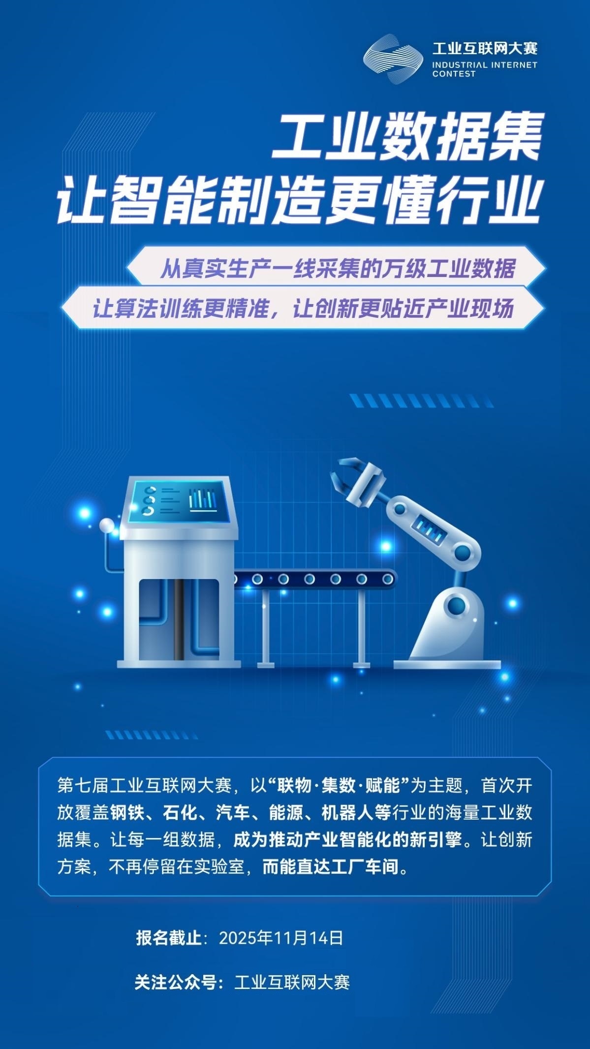 在这里,数据被激活、智能被赋能、产业被重塑;在这里,工业的每一次算法优化、每一个智能场景落地,都将成为推动中国制造向中国“智造”转型的关键一步。第七届工业互联网大赛,正在开启一场以数据为引擎、以智能为驱动的产业创新新篇章。