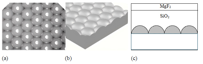 图1 (a)MLA阵列密排六方排布图;(b)MLA阵列示意图;(c)复合MLA结构剖面图