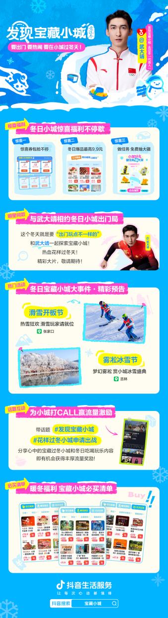 这个冬天,抖音生活服务「发现宝藏小城·去过冬」将携手体育明星、各地文旅和众多达人,带你深度体验小城的冬日魅力。武大靖将化身“冬日体验官”,在冰雪小城挑战不一样的冬季运动,感受小城冰雪的独特魅力。