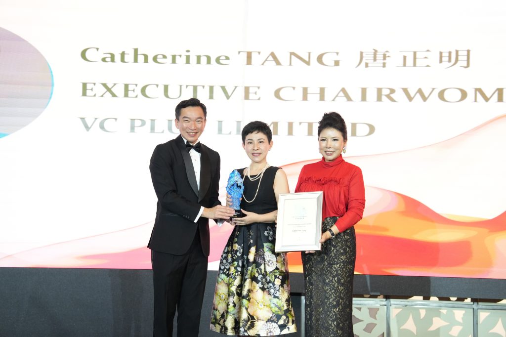 VC Plus的执行主席和总裁唐正明获颁时代财智“亚洲卓越女性奖”,主宾蔡瑞隆先生和宋娓总编辑。