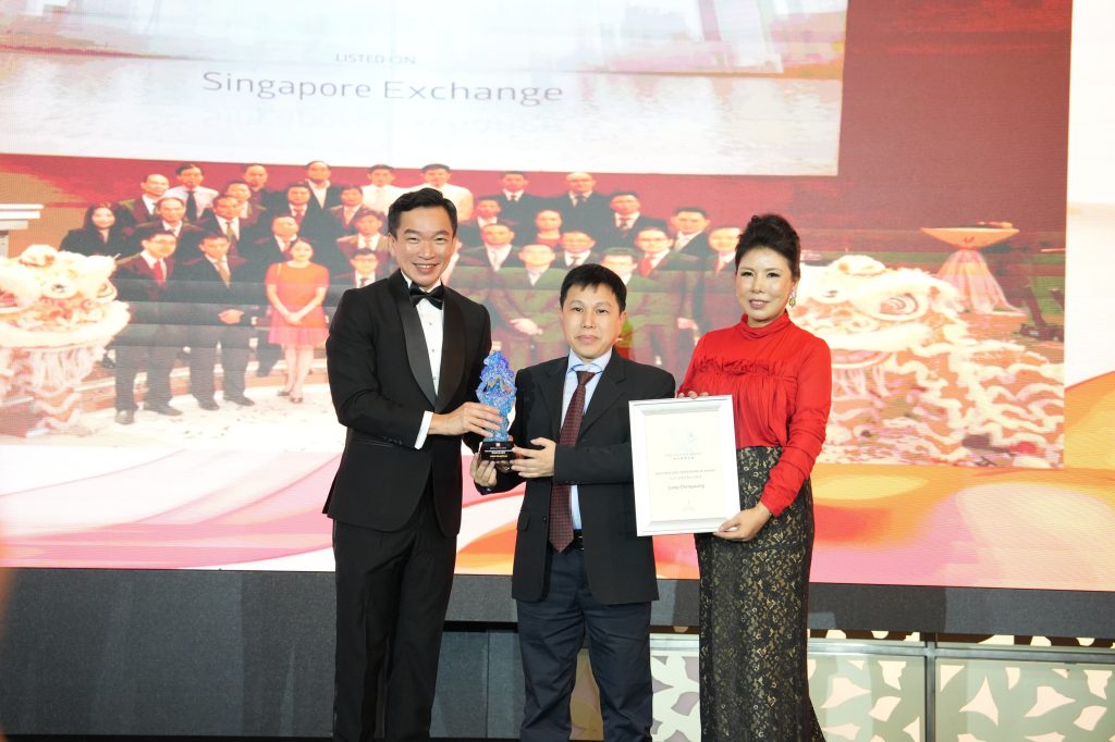 紫心集团创办人兼总裁梁承旺(中)获颁时代财智“亚洲优秀企业家奖”,主宾蔡瑞隆先生和宋娓总编辑。