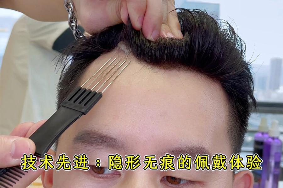 “我们的产品选用优质真人发丝,全部依靠纯手工钩织工艺完成,”店长介绍道,“这种工艺确保了发丝的自然流向和蓬松感,即使是细小的鬓角发际线也能做到以假乱真。”