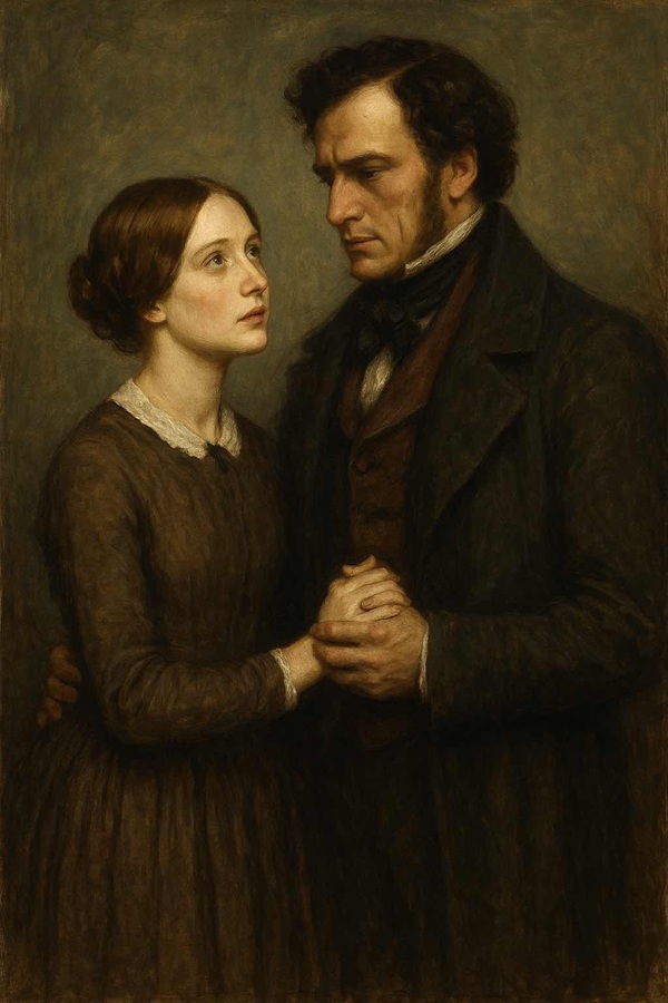 在组诗的多个段落中,简·爱以一位智慧的导师身份出现,她的每一句独白都充满了对爱与信仰的深刻理解。例如,在她与罗切斯特的对话中,简说道:“我们皆为各自命运的河,有的沉溺于浪潮,有的追问彼岸。而我——愿顺流而下,化作无声的海。” 这句话展现了简·爱从个人情感到对人类共同命运的超越,她的爱不再是单一的个体情感,而是具有普遍性的精神力量。