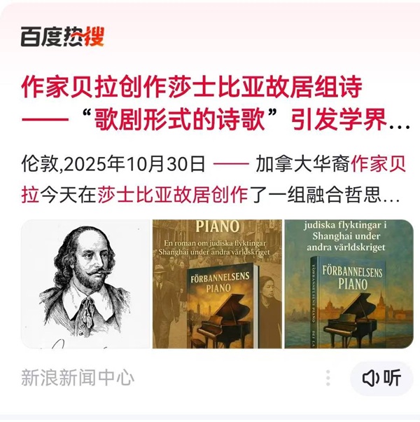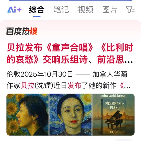在贝拉的文学创作中,这一哲学得到了全新的体现。例如,她的组诗《911生死婚礼交响乐》就以交响乐的五个乐章为结构,模拟交响乐对位法,将个体创伤升华为人类共同命运的叙事。而《魔咒钢琴交响曲》则以钢琴为意象,串联起犹太难民与上海市民的历史,形成了文明救赎的复调结构。这些作品不仅具备音乐的节奏感,还在文学中加入了和声与旋律,形成了“可聆听”的文字艺术。
