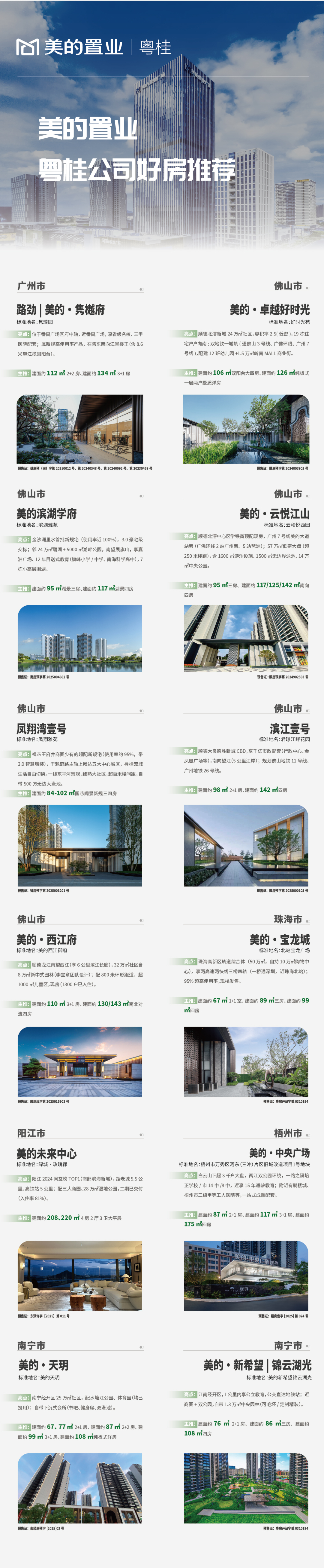 心怀这份理念,美的置业粤桂公司以居住为核心纽带,在两广搭建“适配多元需求”的美好生活体系。它不只是打造单一住宅,而是从城市特性、人群诉求出发,让居住与生活需求深度契合,让“更美的生活”从概念走向具体可感的日常。