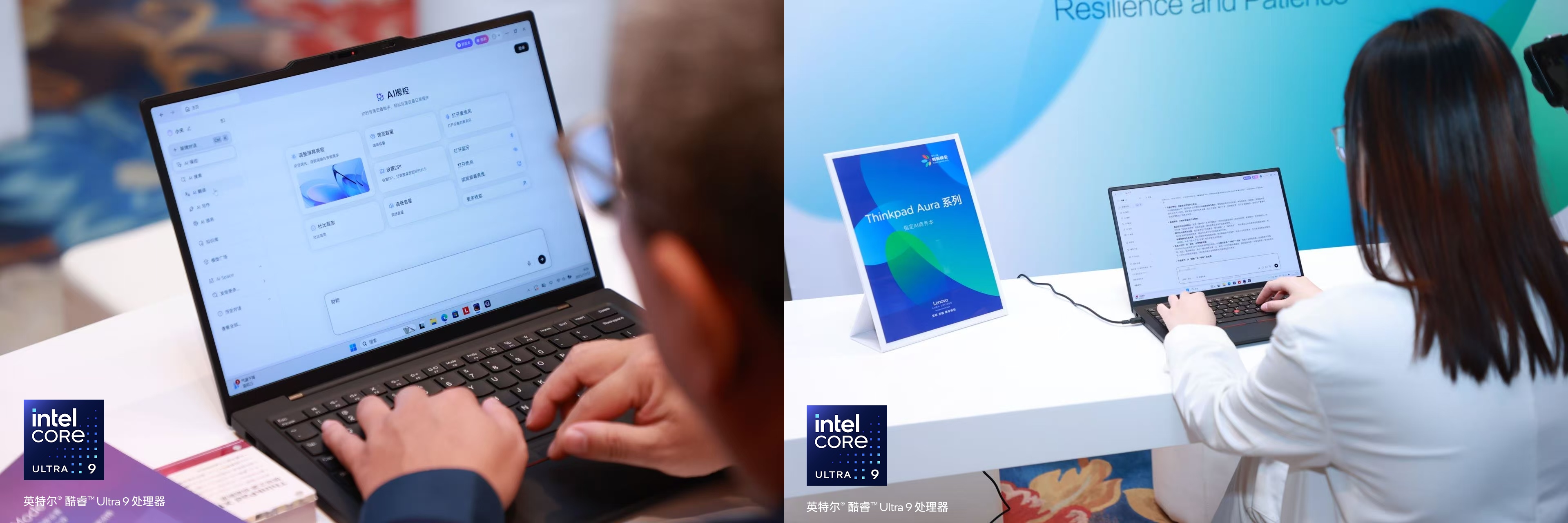 在峰会现场,ThinkPad专设展区为来自全球各地的与会嘉宾提供试用体验,嘉宾可亲自上手体验搭载英特尔®酷睿™Ultra处理器的ThinkPad X1 Carbon Aura、ThinkPad X9 14/15 Aura系列笔记本,感受高端商务本的轻薄便携和极致的AI个性化操作。