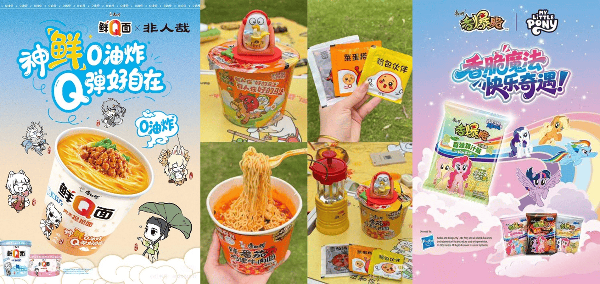 今年上半年,康师傅番茄鸡蛋牛肉面与热门IP小刘鸭联名,针对白领消费者,让高冷段子深入人心,持续带动销量提升;香爆脆干脆面,联动小马宝莉IP,深度触达学生群体,业绩增长接近两位数。