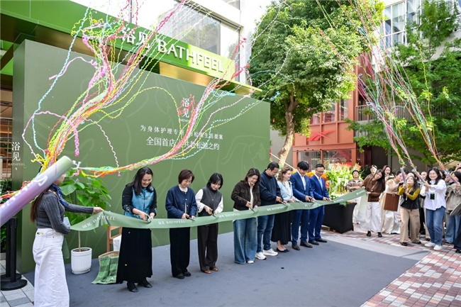 上午10点半,浴见品牌创始人李励女士、联合创始人王鸣、贝泰妮集团投资方代表等特邀嘉宾共同手持金剪,为这个名为「一个人的自由浴室」的空间剪彩。这不仅是一场开业仪式,更是对十年线上情谊的实体回应,也是品牌从产品到场景、从功能到感受的战略性升维。