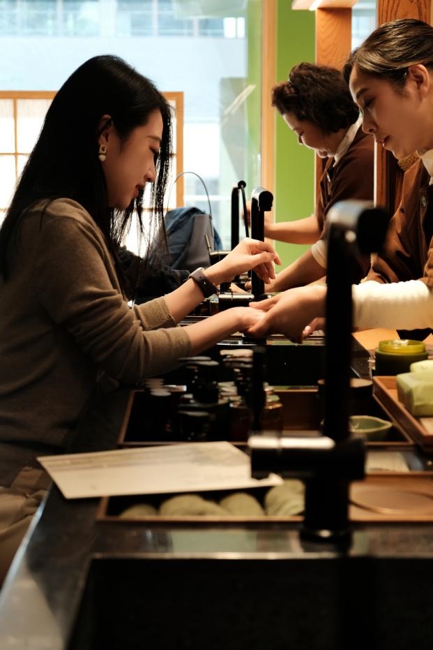 「见个面」区域通过品牌自主策划的《身体新知》刊物与系列香氛产品,构建了一个关于浴室文化与身体哲学的阅读场域。「握个手」区域则巧妙地将产品体验融入一套完整的手部护理仪式中。「聊一聊」区域则以“浴室与自我”为主题的微型展览,进一步深化空间的情感连接功能。「下次见」区域取代了传统的收银区,用期待再次相遇的温暖寓意,打破传统交易完成后关系即告一段落的商业逻辑。