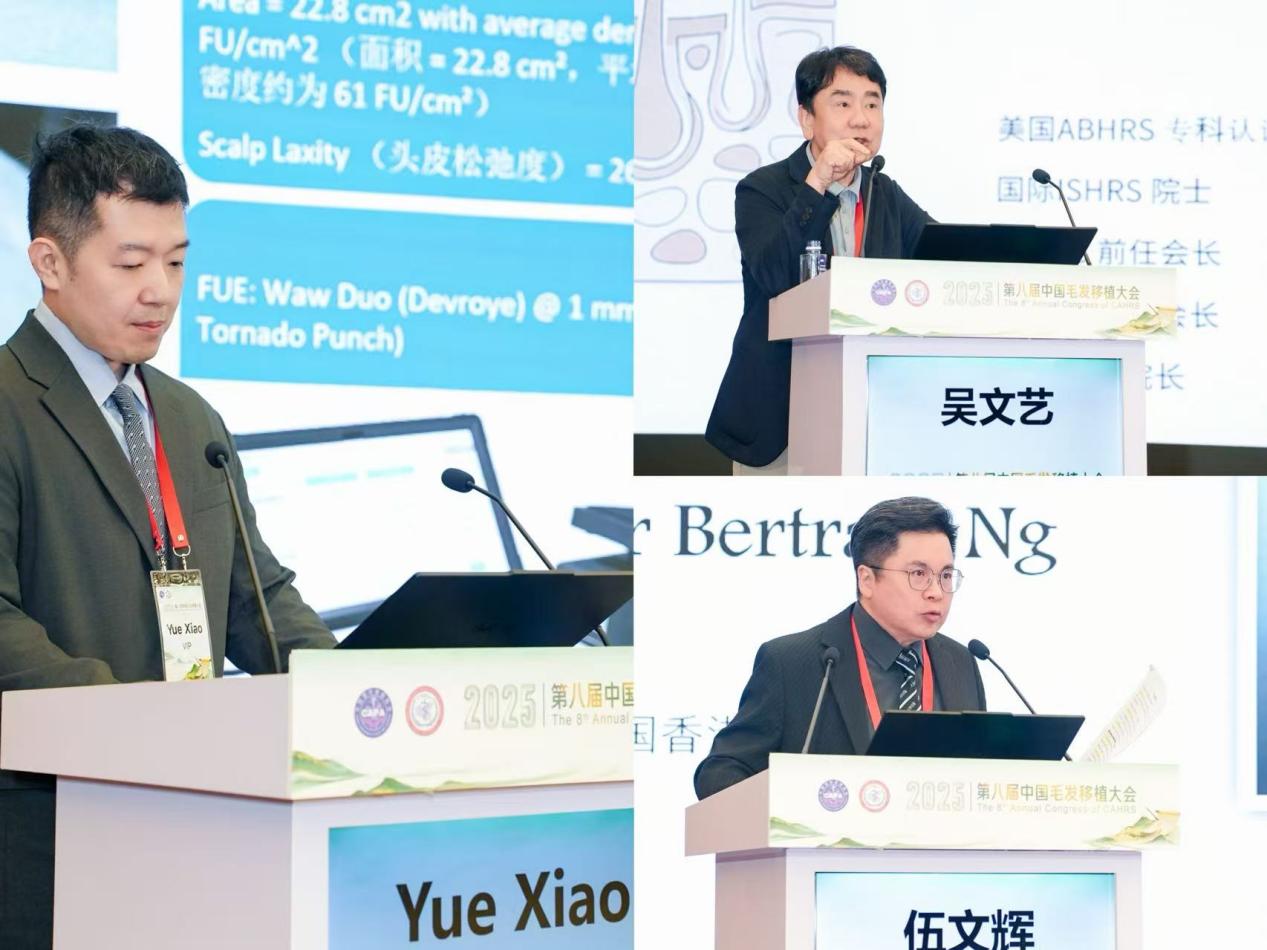 本次大会特别邀请国际学者参与,提升学术国际化水平。11月14日全体大会上,加拿大ISHRS fellow Dr. Yue Xiao 分享《Hybrid Harvesting for Limited Donor Cases》,中国香港伍文辉医生、中国台湾吴文艺医生分别就 “脱发晚期毛囊移植技术”“毛发移植发展历程” 展开报告,为中国毛发医学发展注入国际视角,深化跨地域学术合作。