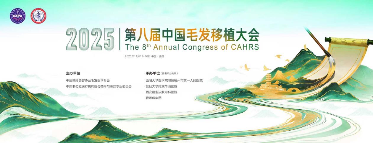 【中国,西安】2025年11月16日,第八届中国毛发移植大会(CAHRS)完成全部议程,在西安曲江国际会议中心圆满落幕。本次大会由中国整形美容协会毛发医学分会主办,西湖大学医学院附属杭州市第一人民医院、复旦大学附属华山医院、西安疤愈_陕西附大医院、碧莲盛医疗集团联合承办,以 “协同创新,共筑未来” 为主题,汇聚国内外顶尖专家学者与行业力量,涵盖学术研讨、技术展示、产业交流、人文活动等多元维度,成为覆盖毛发医学全产业链的行业顶级盛会。