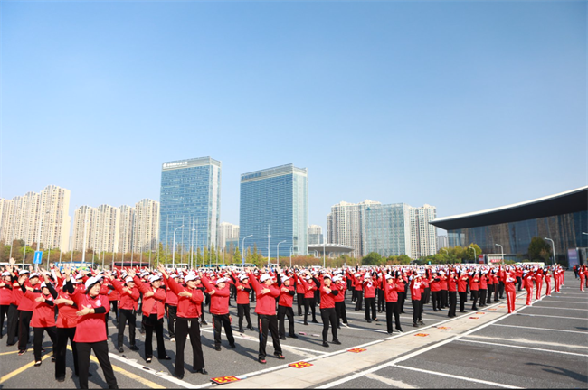 在大会文体展演环节,三千名老年舞者共同演绎“777健康操”。昆药集团777学术推广部为参与者赠送了纪念品。