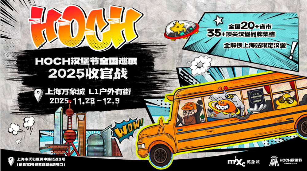 备受瞩目的HOCH汉堡节全国巡展即将迎来年度收官之作。据悉,本次HOCH汉堡节全国巡展·上海站将于11月28日至12月9日在上海万象城正式启幕,持续12天,汇聚来自全国24座城市的40家顶尖品牌,预计将吸引全城美食爱好者前来打卡,冲击客流新纪录。