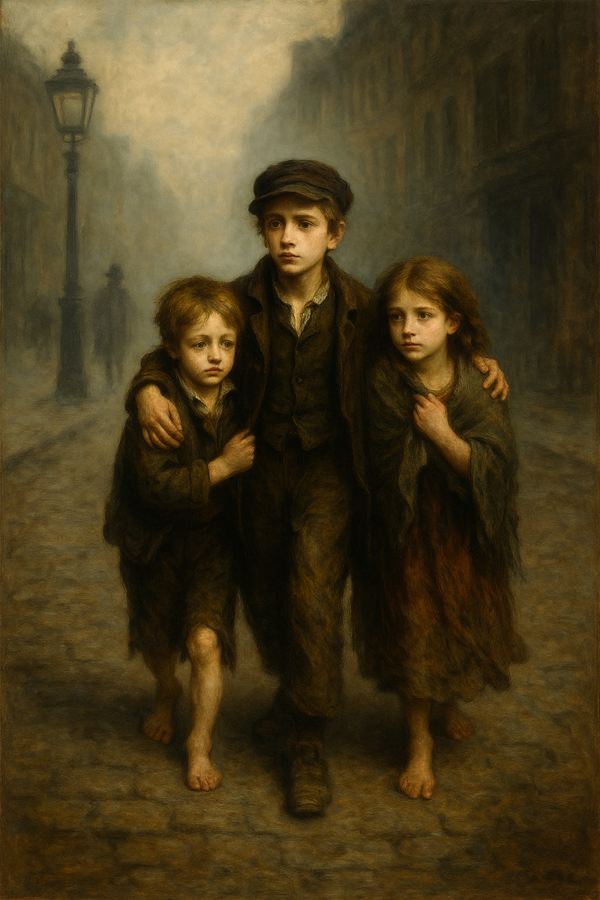 从济贫院到伦敦 从冷雨街角到盗贼巢穴 世界像一册狄更斯的手稿 而一颗孩子的心—— 被黑暗举起 在煤烟与铁轨之间 练习成为一个“存在者”