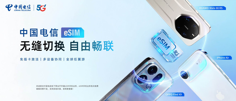 eSIM的规模推广,不仅是通信技术的演进,更是数字生活方式的革新。作为5G-A、手机直连卫星等前沿通信能力的积极部署者,中国电信持续夯实数字基础设施底座,推动eSIM与多终端、多场景深度融合。未来,中国电信将继续携手产业链伙伴,共建“开放、协同、共赢”的eSIM产业生态,为用户带来更智能、更自由的数字生活体验。