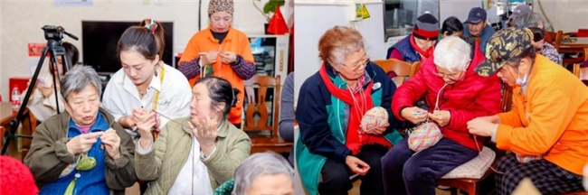 外场区域开设“爱心义剪”“书画送福”“非遗展示”“新年摄影”四大服务点位。志愿者中既有专业理发师为老人精心修剪发型,也有书法爱好者现场挥毫撰写“福”“寿”吉祥作品赠与老人;“新年照拍摄区”更为老人记录温馨瞬间,提前送上节日祝福,现场氛围亲切如家。内场活动中,志愿服务队带来了精彩纷呈的文艺演出与互动环节。诗朗诵深情饱满、魔术表演妙趣横生、京剧选段韵味醇厚,引发阵阵掌声。在互动环节,老人与志愿者齐声合唱经典红歌,将现场气氛推向高潮。随后的手工互动,志愿者一对一指导老人制作毛线花与中药香囊,在笑语中共创作品,传递浓浓真情。