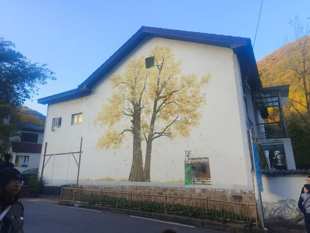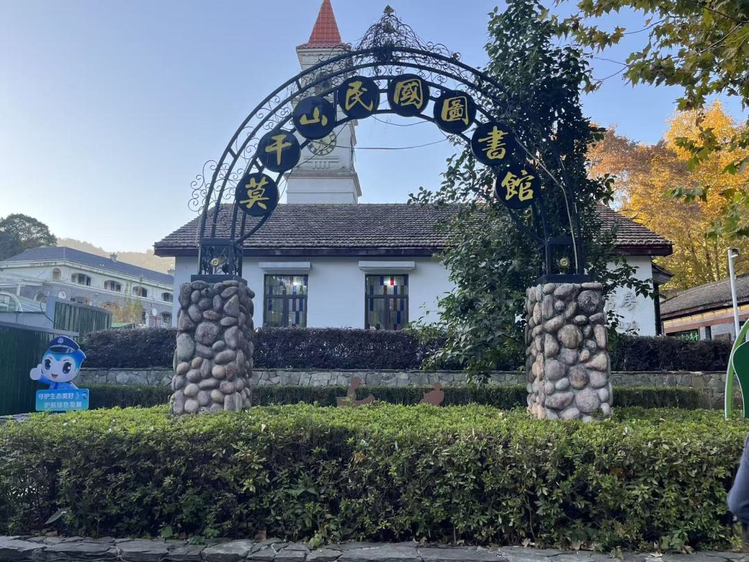下午,省散文学会组织与会者逛莫干山镇。漫步街头,我感觉这个镇的体量不大,建筑不高,楼面和街面都干干净净,处处体现了民国风情,有莫干山邮局、莫干山车站和莫干山民国图书馆,为游客营造了一个舒适的小环境,尤其是随处可见的初冬红叶,又增添了几分浪漫情调。