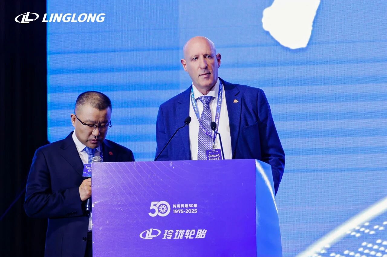 大会开幕伊始,玲珑轮胎董事长王锋发表《同行百年,共创价值》主旨分享。他深情回顾了企业50年发展历程:自1975年创立至今,玲珑历经多次重大战略转型,始终顺应时代发展潮流,从胶东半岛的一家工厂,稳步成长为销售网络覆盖全球、产品畅销173个国家的国际化企业。