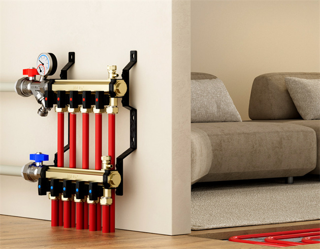此外,产品配备的大手柄调节结构与高密封性球阀开关,转动阻力小、调节线性清晰,用户可轻松、精准地控制各支路流量。这不仅实现了水力均衡分配,避免“远端不热、近端过热”现象,更能支持不同房间温度的独立微调,满足个性化采暖需求,最终确保全屋温度均匀稳定,显著提升舒适度与系统整体能效。