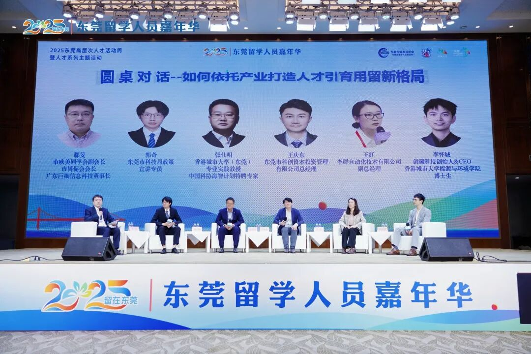 嘉年华活动的压轴环节,多位海归创业者、科研专家与部门代表则围绕“如何依托产业打造人才引育留新格局”展开了一场热烈的圆桌对话。嘉宾们结合自身经历,深入剖析了当前海归人才在创新创业中面临的痛点,如产教供需错配、成果转化难等。大家探讨后一致认为,应依托东莞深厚的制造业基础,打通人才与产业的“任督二脉”,同时完善全周期服务保障,让海归人才从“来了”变为“留下”,真正实现产业与人才的双向奔赴、深度融合。
