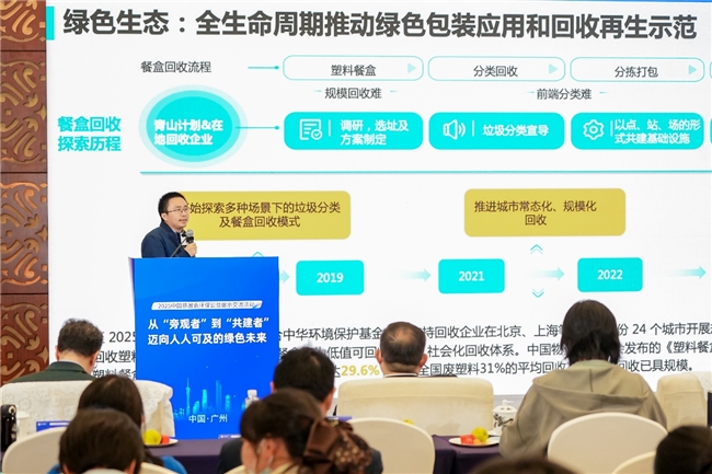 围绕“好杯新生”的跨界动员术,美团青山计划塑料议题负责人黄培坤深入分享了“好杯新生”推动现制饮品行业饮品杯低碳循环发展的行动模式,展示了如何跨界联动基金会、行业组织、品牌商家、消费者、产业链、社会组织等生态各方实现全生命周期的绿色行动。该模式通过引导自带杯源头减量、生态设计推动包装绿色升级、分类回收激励消费者参与、科技赋能提升餐盒和饮品杯再生技术产业化水平,以及联动行业伙伴共建多元共治网络,探索构建饮品杯全生命周期绿色闭环示范体系,助力商业向善与环保同行。