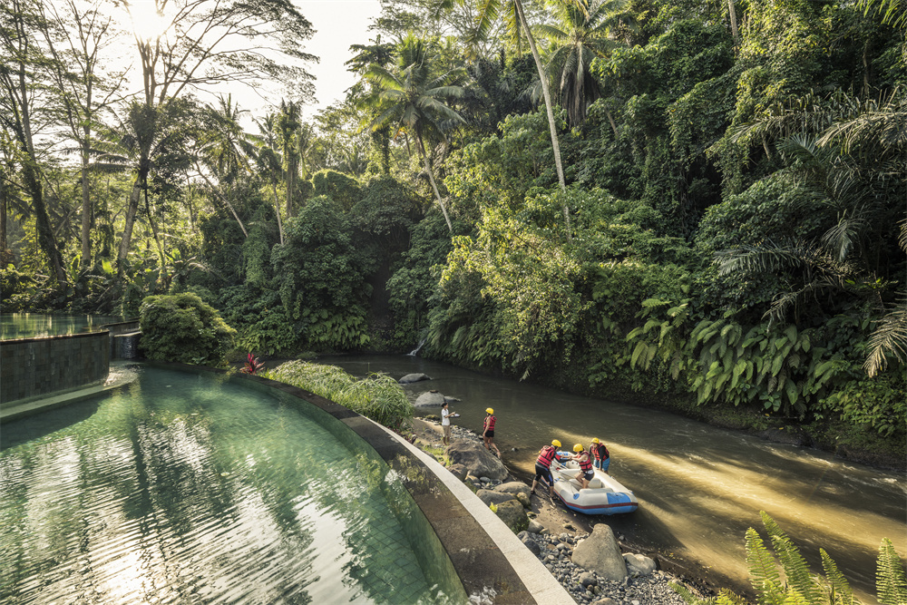 宾客将乘坐私人竹筏沿爱咏河顺流而下,前往巴厘岛山妍四季度假酒店,在静水流转之间,得以一窥巴厘岛少有人至的原始腹地。抵达酒店时,宁静氛围与已妥善安置的行李一并静候。在山妍,宾客可探访隐于林间、仿佛停驻时光之外的古老寺庙与当地民宅;于圣河水疗中心度过静谧时光,休憩身心、沉淀思绪;或是沉浸在浮莲环绕的静谧莲花池景致中,品味植物草本饮品与植物基精致点心巧妙搭配的下午茶。夜幕降临后,在星光点点的夜空下享受一场夜间水疗仪式,通过河石按摩与水晶面部的加乘护理使身心重归平衡。