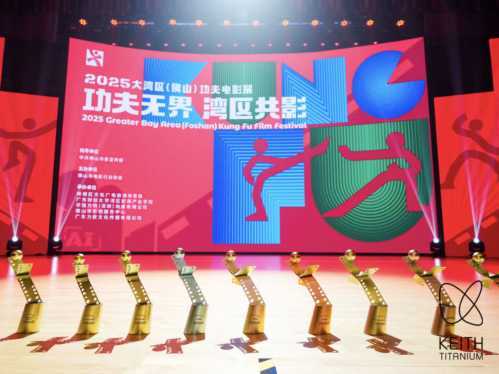 在本届电影展上,由佛山本土企业铠斯钛科技有限公司旗下高端消费品牌“KEITH铠斯”倾力打造的荣誉奖杯,以其突破性的材质运用与匠心设计,成为现场焦点——这是全球首座以纯钛金属打造的奖杯,既为影展镌刻下独特印记,更以佛山制造的创新力量,让钛金属工艺与功夫文化实现了精彩共鸣。