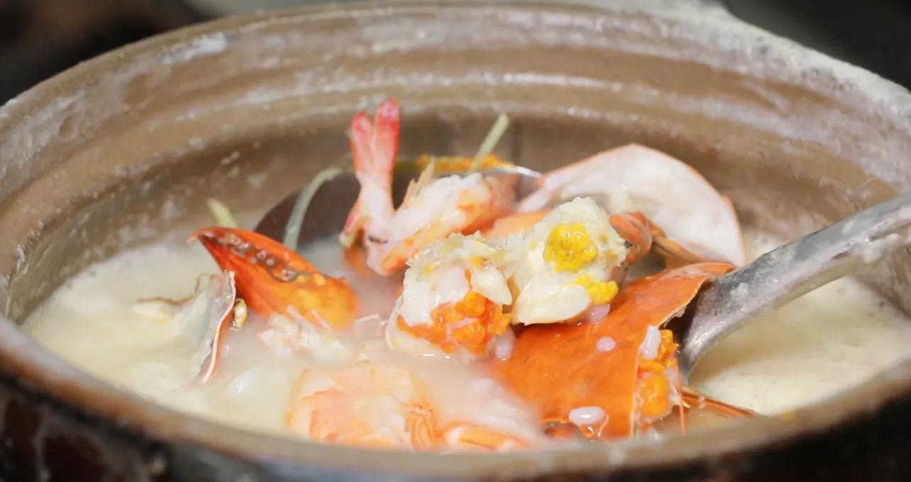 店里的“天花板”莫过于招牌砂锅膏蟹虾粥,每日鲜活的膏蟹与海虾到店,现捞现煮。慢火熬出的粥底绵绸顺滑,蟹膏金黄流润,蟹肉饱满多汁,虾肉弹牙鲜甜。一碗下肚,暖意与鲜香交融,瞬间征服舌尖。